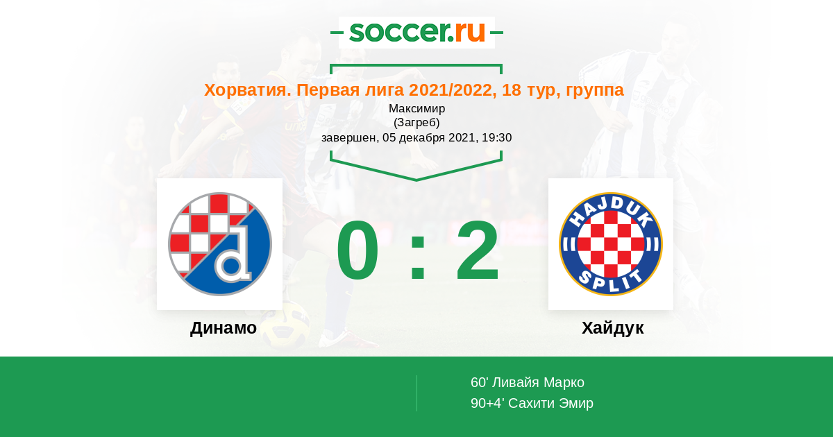 Динамо - Хайдук: обзор матча 5 декабря 2021