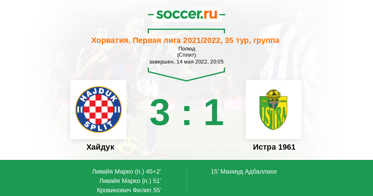 Хайдук - Истра 1961: обзор матча 14 мая 2022