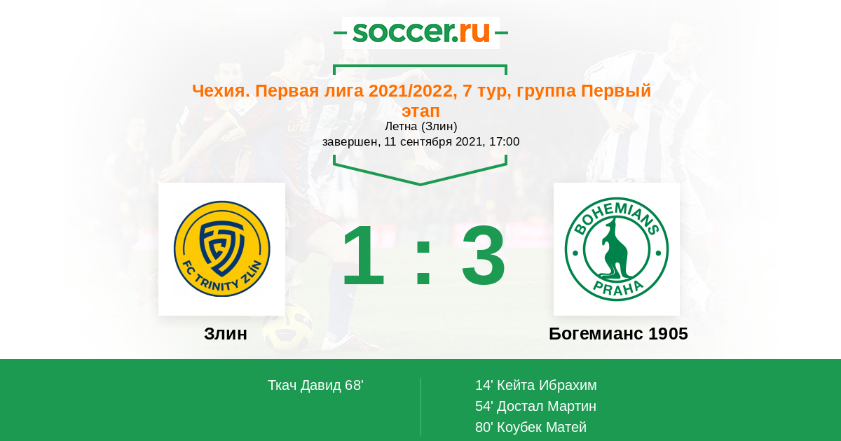 Злин - Богемианс 1905: обзор матча 11 сентября 2021