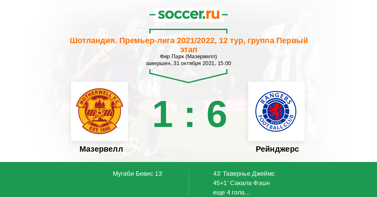 Мазервелл - Рейнджерс: обзор матча 31 октября 2021
