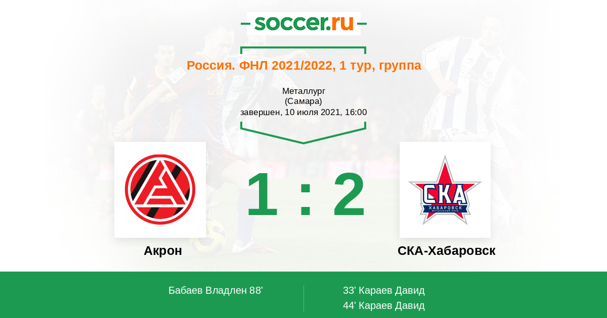 Акрон - СКА-Хабаровск: обзор матча 10 июля 2021