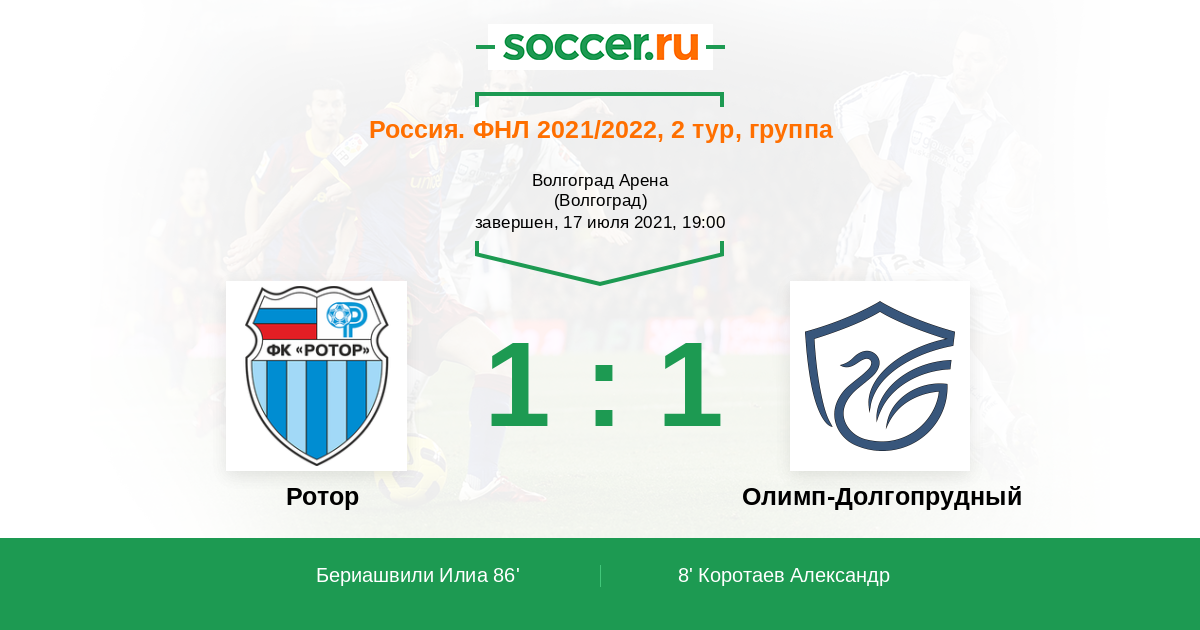 Ротор - Олимп-Долгопрудный: обзор матча 17 июля 2021