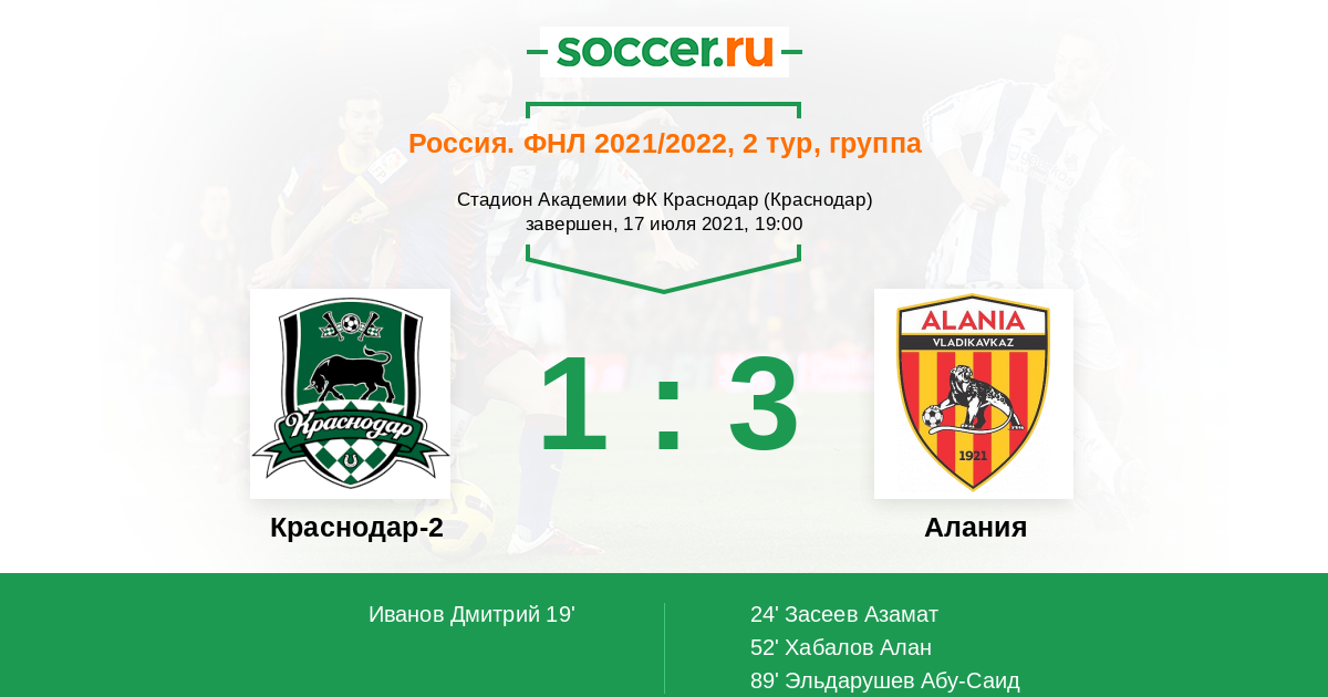 Краснодар-2 - Алания: обзор матча 17 июля 2021
