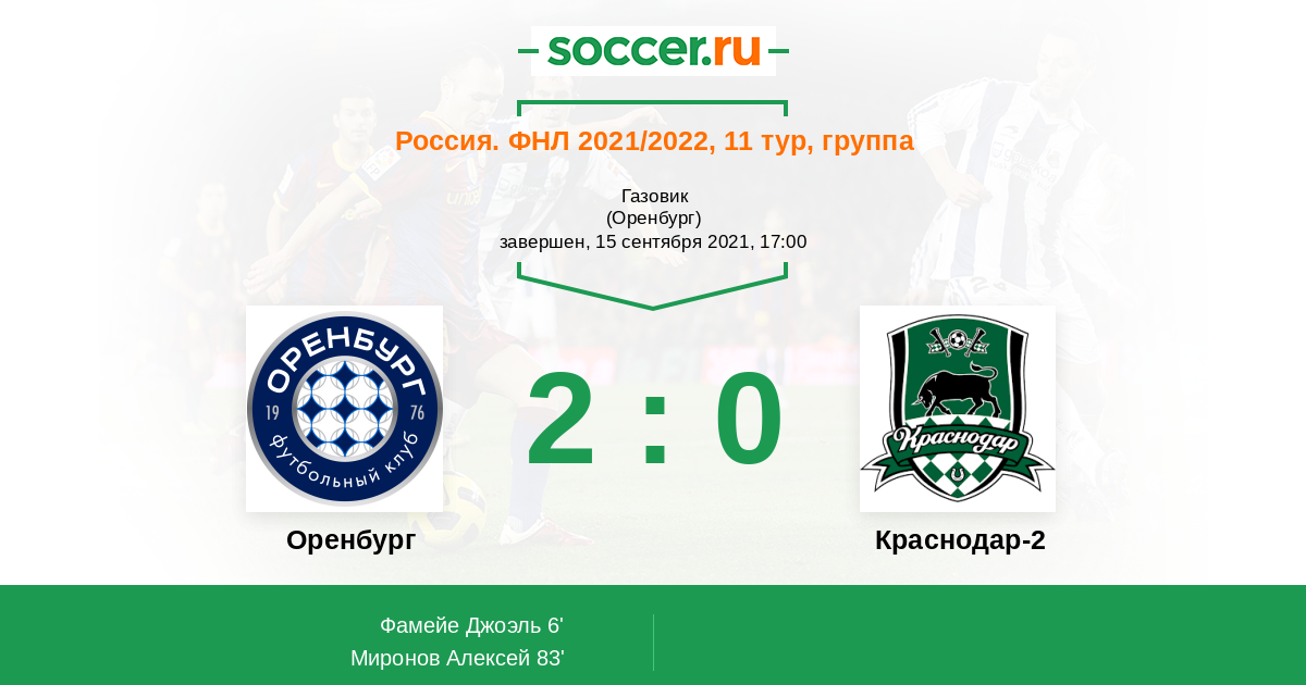 Оренбург - Краснодар-2: обзор матча 15 сентября 2021