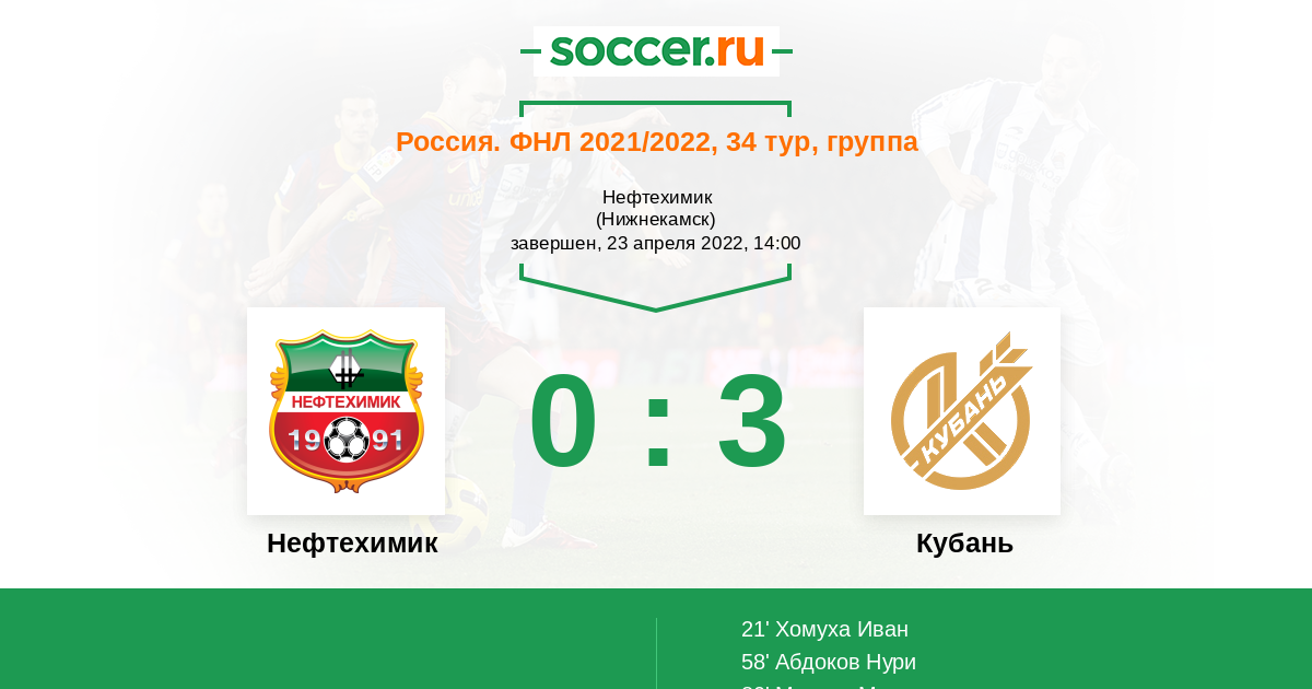 Нефтехимик - Кубань: обзор матча 23 апреля 2022