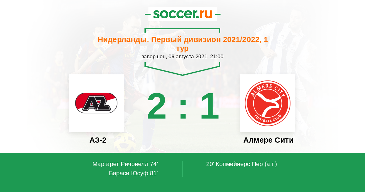 АЗ-2 - Алмере Сити: обзор матча 9 августа 2021