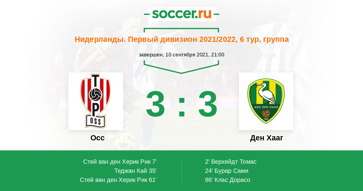 Осс - Ден Хааг: обзор матча 10 сентября 2021