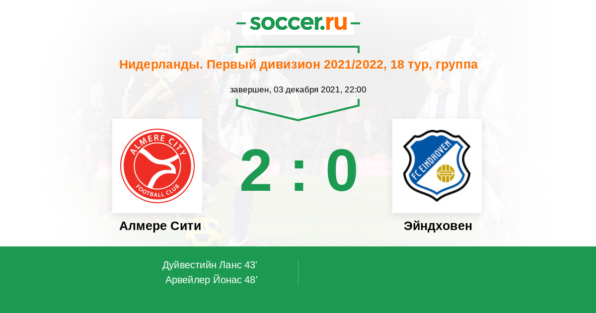 Алмере Сити - Эйндховен: обзор матча 3 декабря 2021