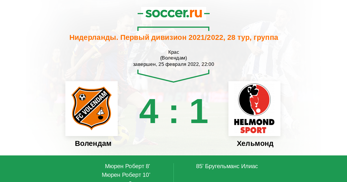 Волендам - Хельмонд: обзор матча 25 февраля 2022