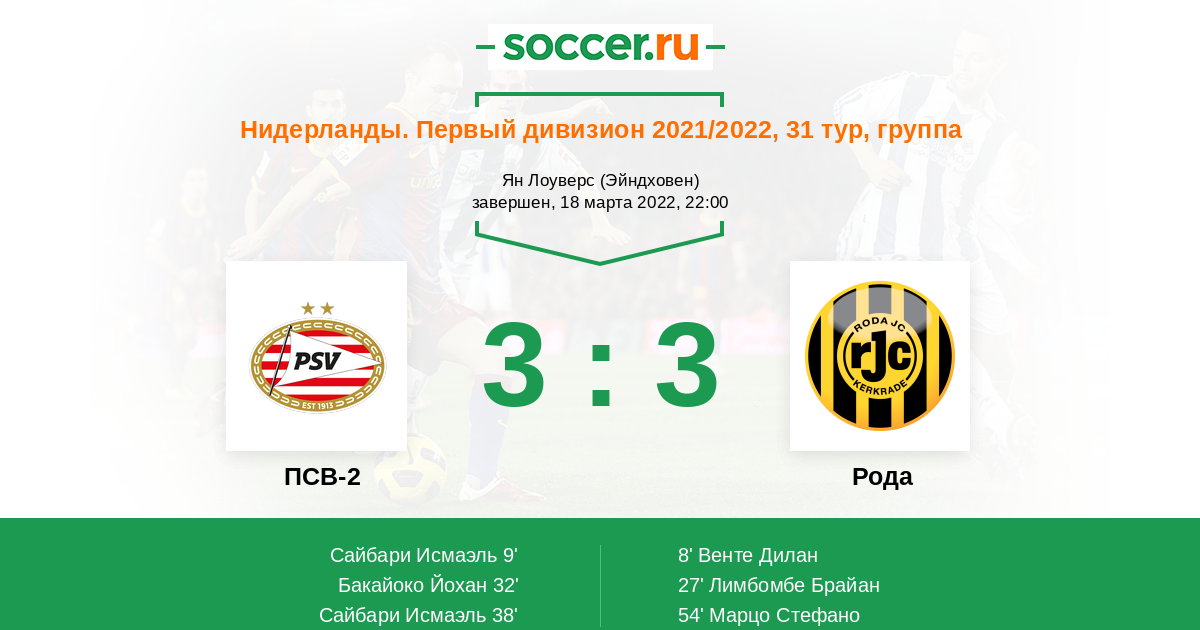 ПСВ-2 - Рода: обзор матча 18 марта 2022