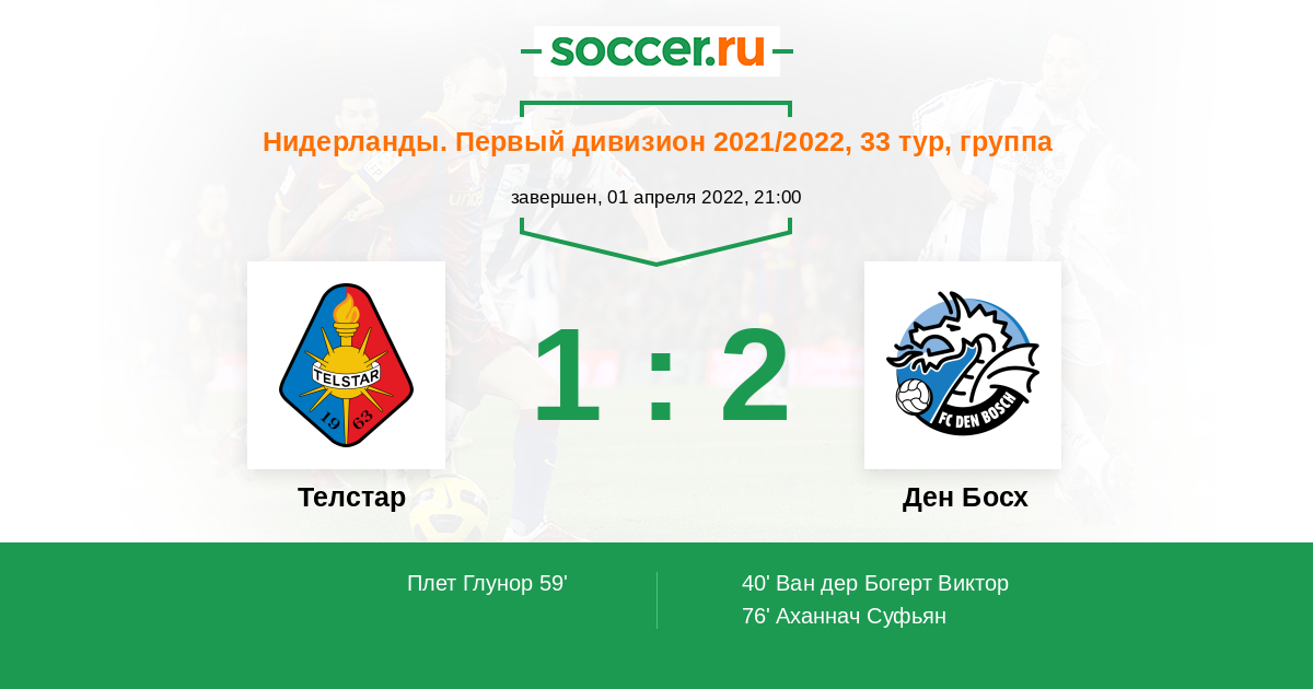Телстар - Ден Босх: обзор матча 1 апреля 2022
