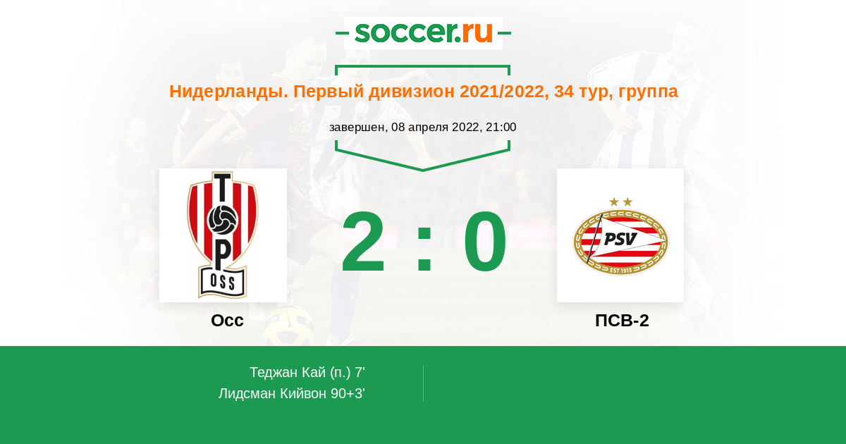 Осс - ПСВ-2: обзор матча 8 апреля 2022