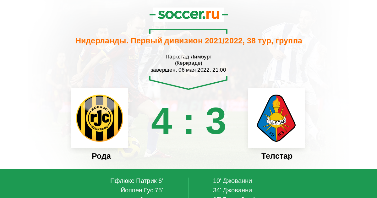 Рода - Телстар: обзор матча 6 мая 2022
