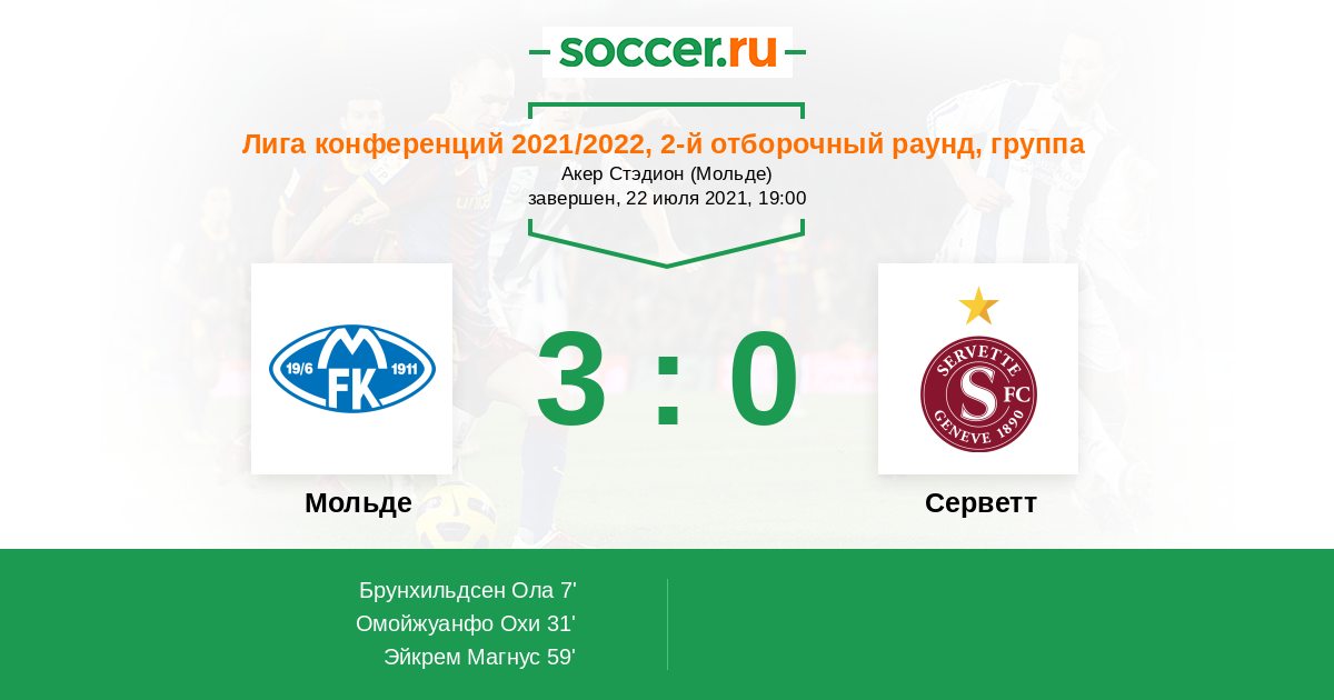 Мольде - Серветт: обзор матча 22 июля 2021