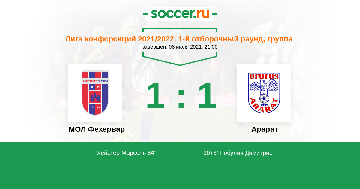 МОЛ Фехервар - Арарат: обзор матча 8 июля 2021