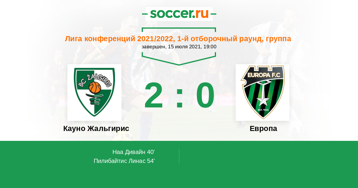 Кауно Жальгирис - Европа: обзор матча 15 июля 2021