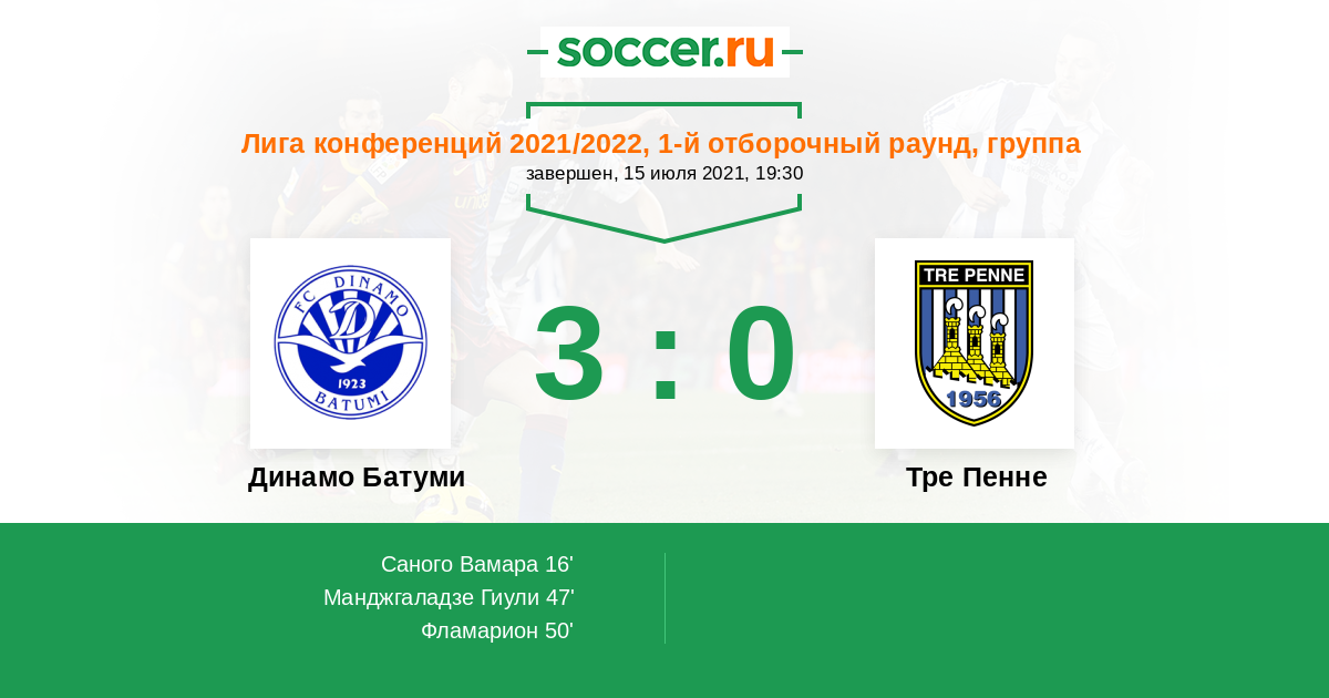 Динамо Батуми - Тре Пенне: обзор матча 15 июля 2021