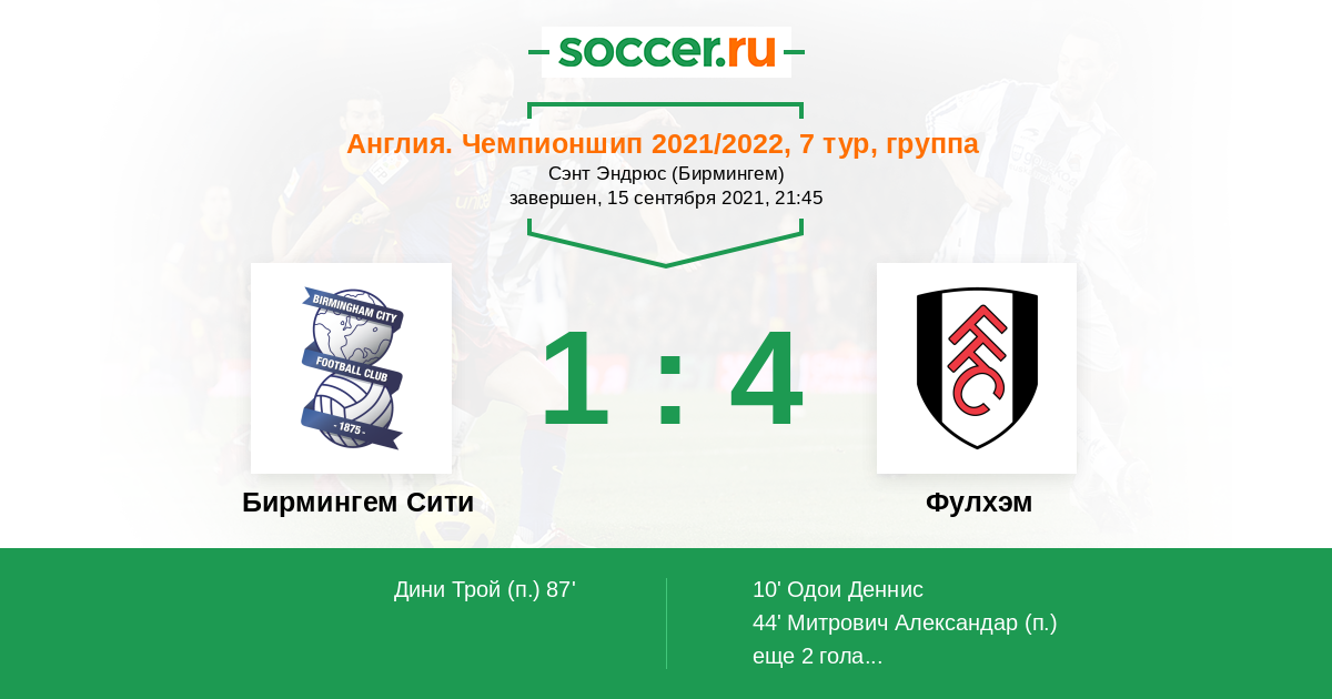 Бирмингем Сити - Фулхэм: обзор матча 15 сентября 2021