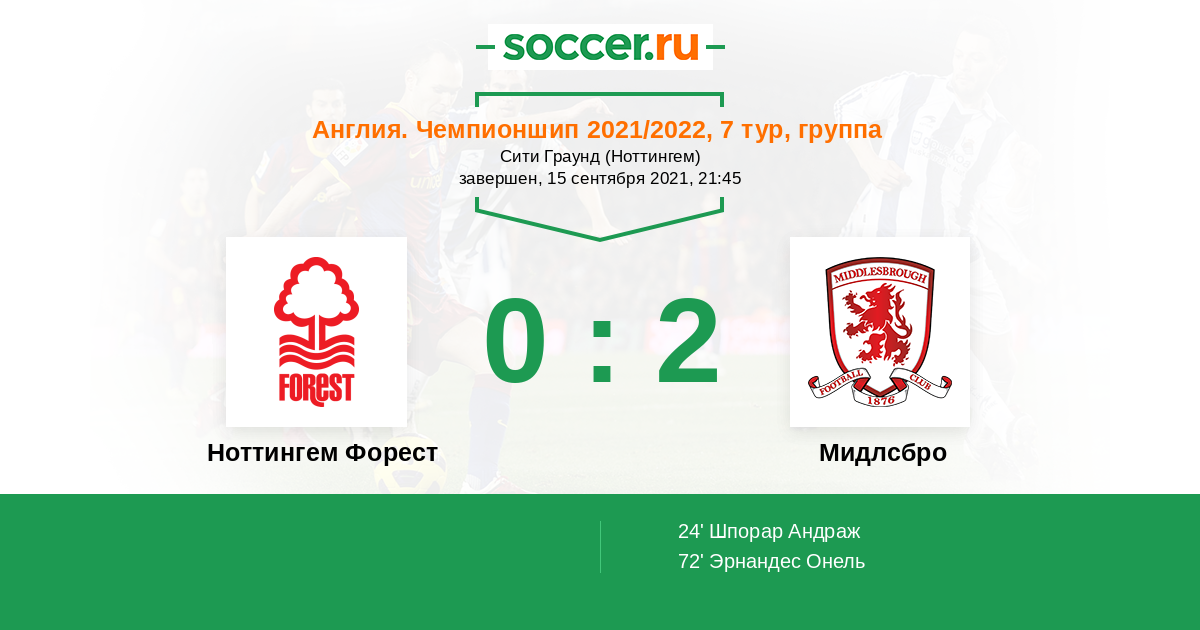 Ноттингем Форест - Мидлсбро: обзор матча 15 сентября 2021