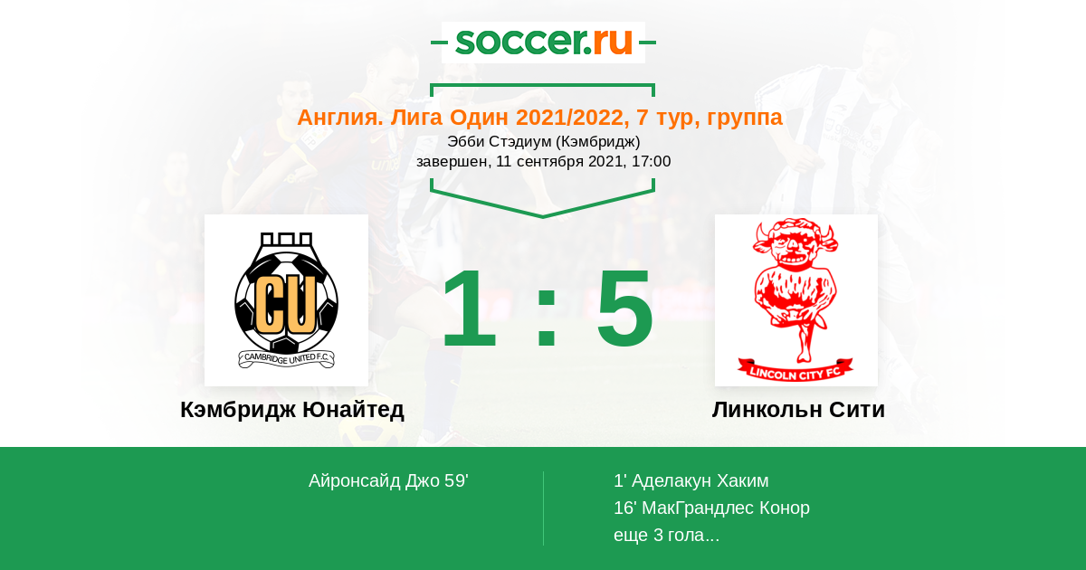 Кэмбридж Юнайтед - Линкольн Сити: обзор матча 11 сентября 2021