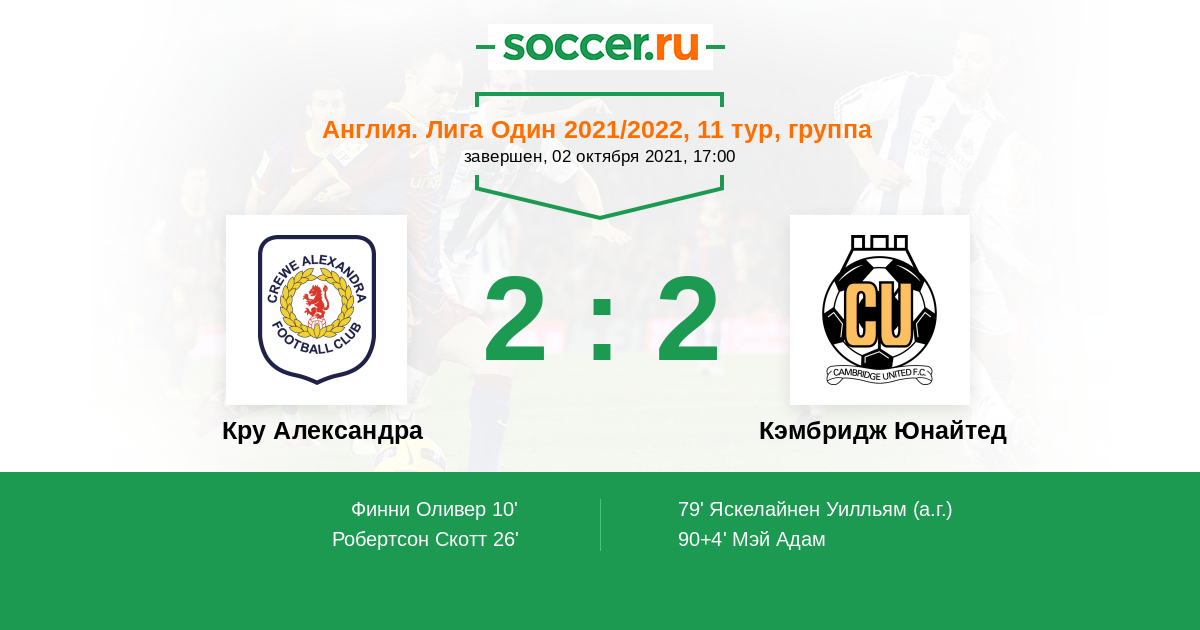 Кру Александра - Кэмбридж Юнайтед: обзор матча 2 октября 2021