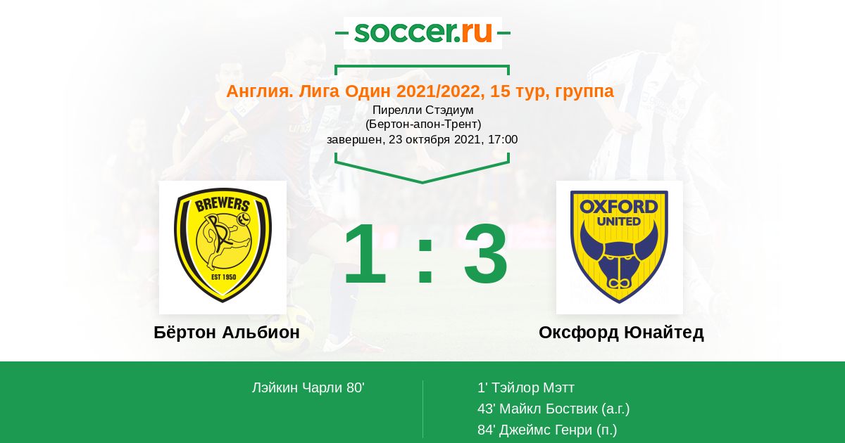 Бёртон Альбион - Оксфорд Юнайтед: обзор матча 23 октября 2021