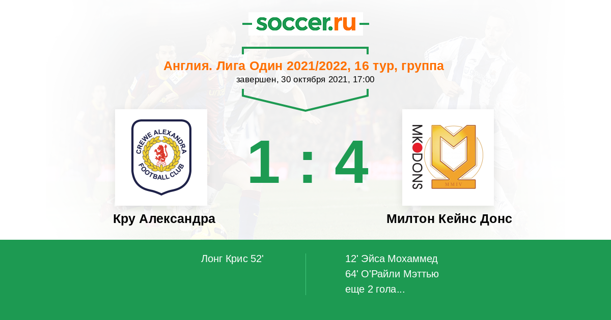 Кру Александра - Милтон Кейнс Донс: обзор матча 30 октября 2021