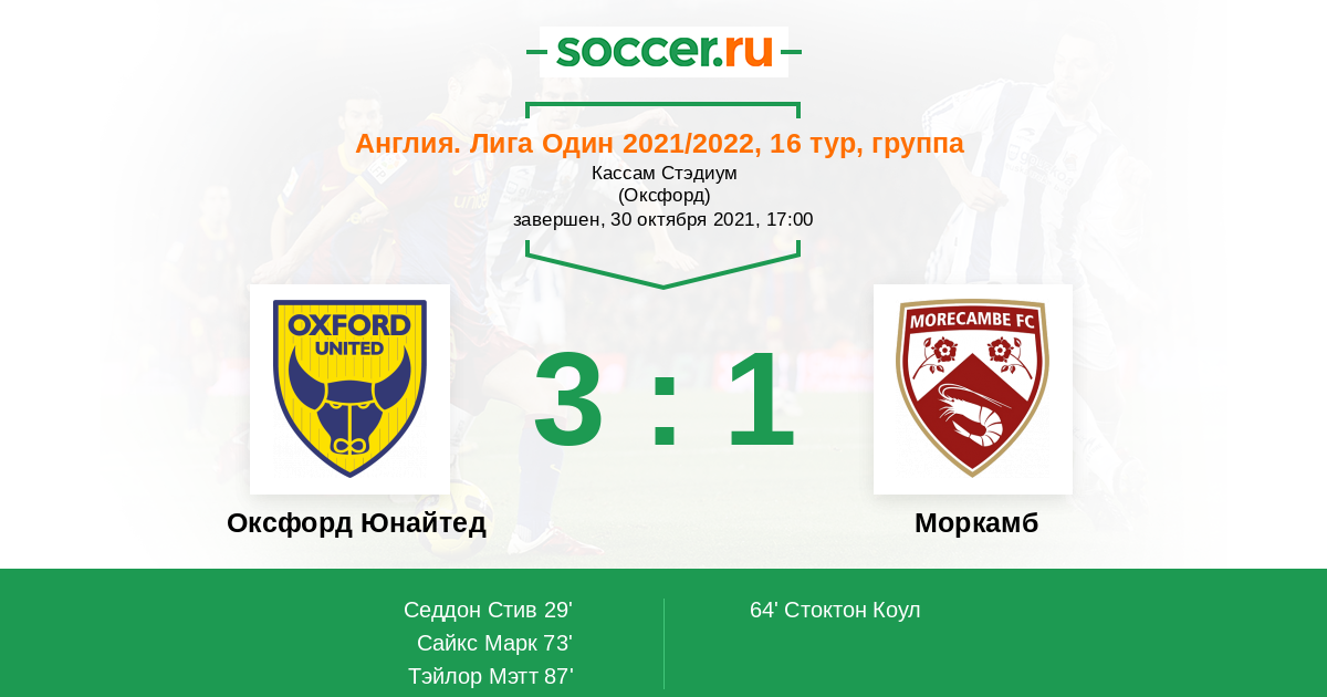 Оксфорд Юнайтед - Моркамб: обзор матча 30 октября 2021