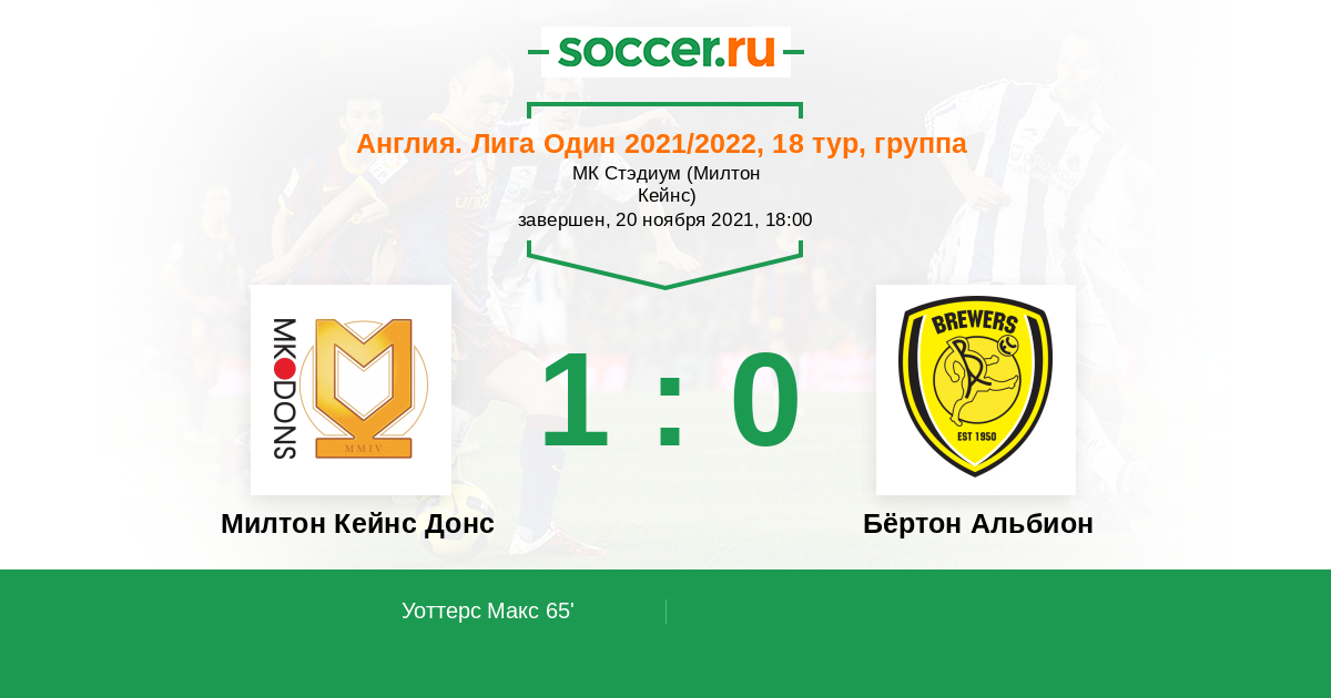 Милтон Кейнс Донс - Бёртон Альбион: обзор матча 20 ноября 2021
