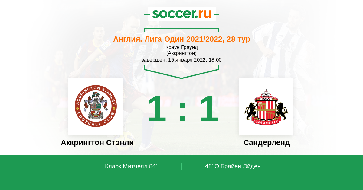 Аккрингтон Стэнли - Сандерленд: обзор матча 15 января 2022