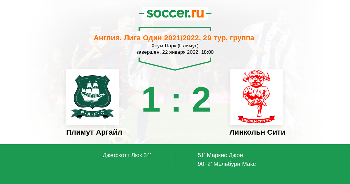 Плимут Аргайл - Линкольн Сити: обзор матча 22 января 2022