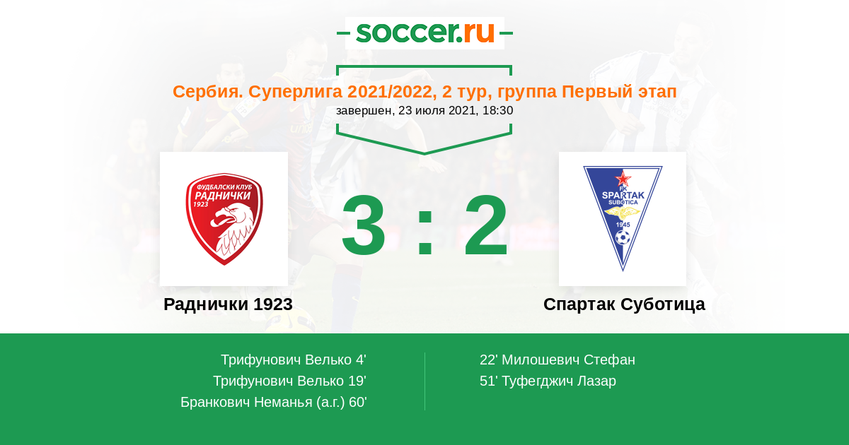Раднички 1923 - Спартак Суботица: обзор матча 23 июля 2021