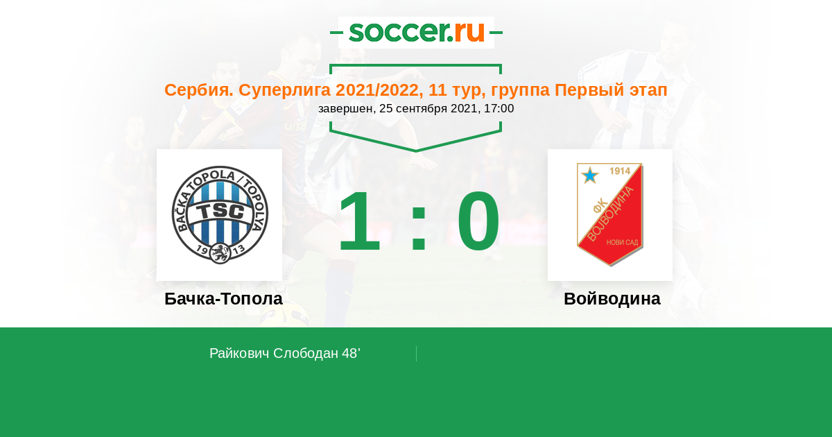 Бачка-Топола - Войводина: обзор матча 25 сентября 2021