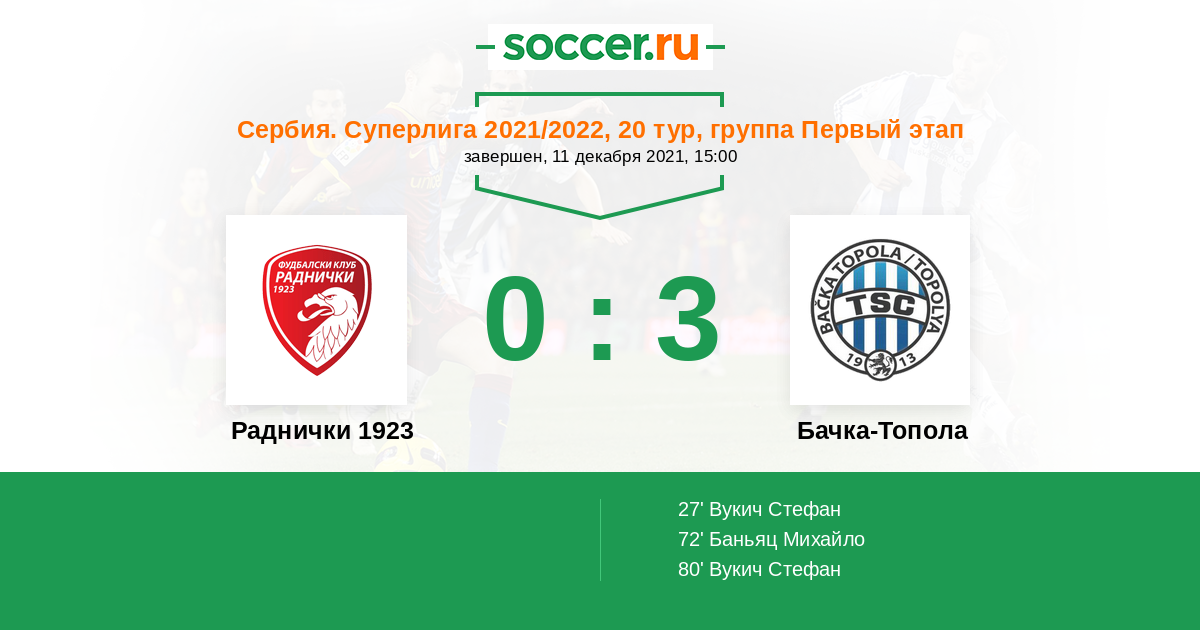Раднички 1923 - Бачка-Топола: обзор матча 11 декабря 2021