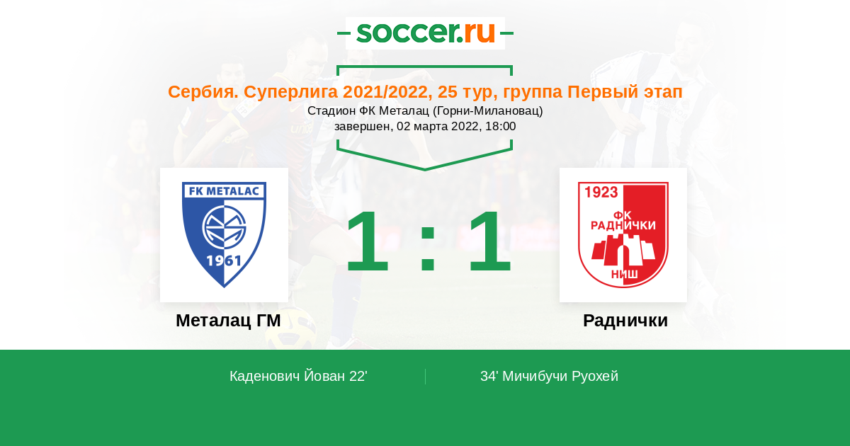 Металац ГМ - Раднички: обзор матча 2 марта 2022