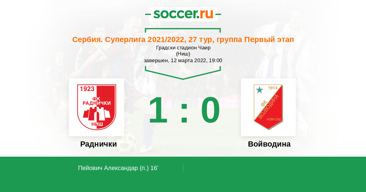 Раднички - Войводина: обзор матча 12 марта 2022