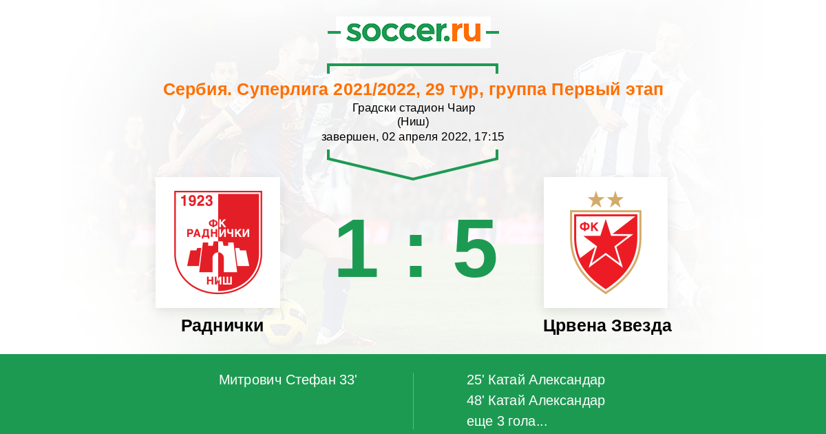 Раднички - Црвена Звезда: обзор матча 2 апреля 2022