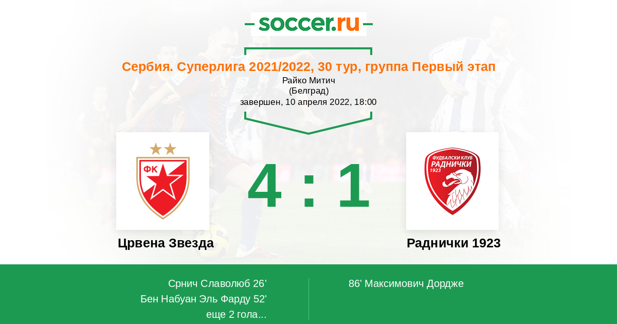 Црвена Звезда - Раднички 1923: обзор матча 10 апреля 2022