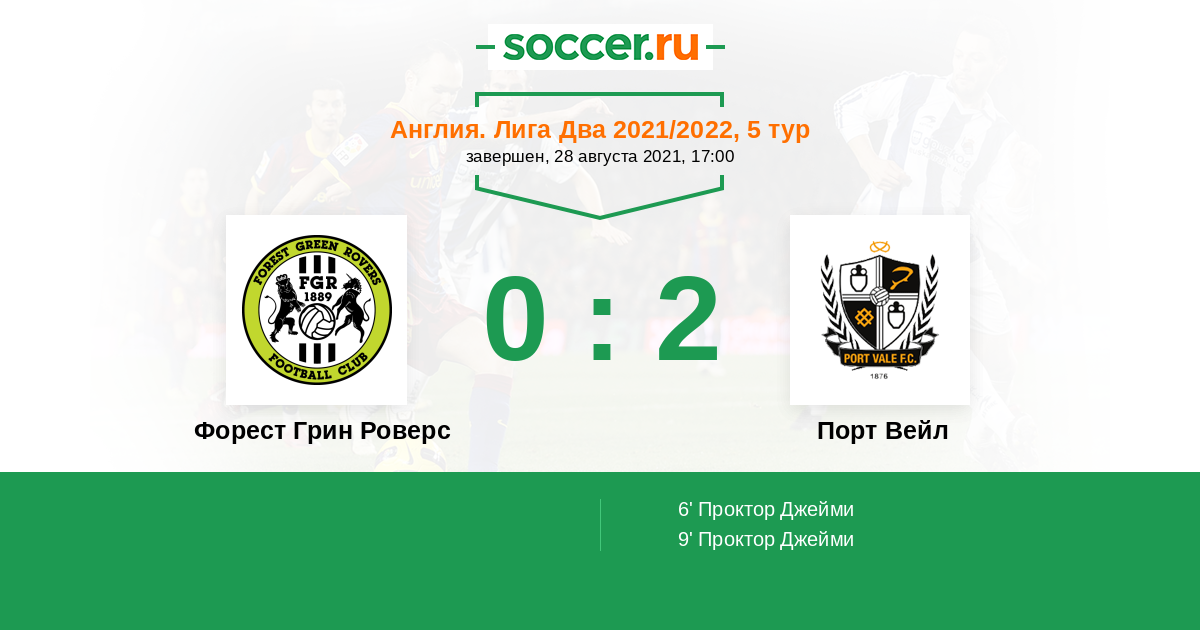 Форест Грин Роверс - Порт Вейл: обзор матча 28 августа 2021