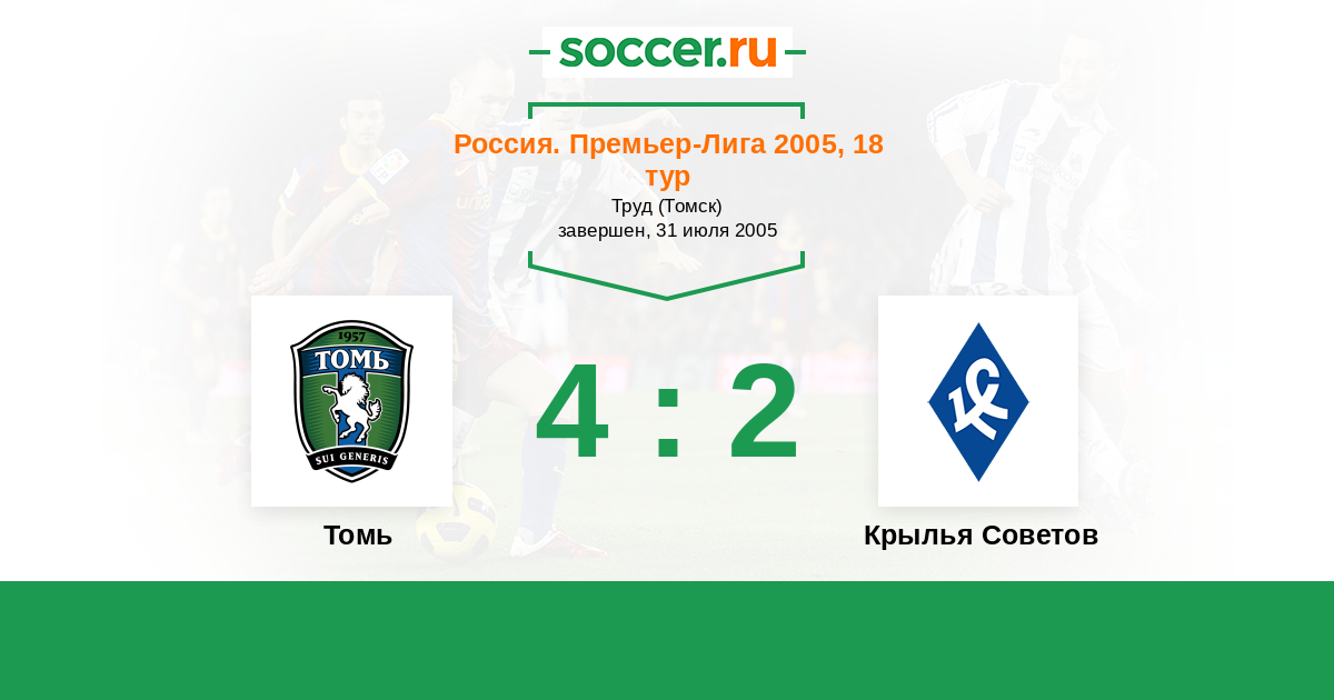 Томь - Крылья Советов: обзор матча 31 июля 2005