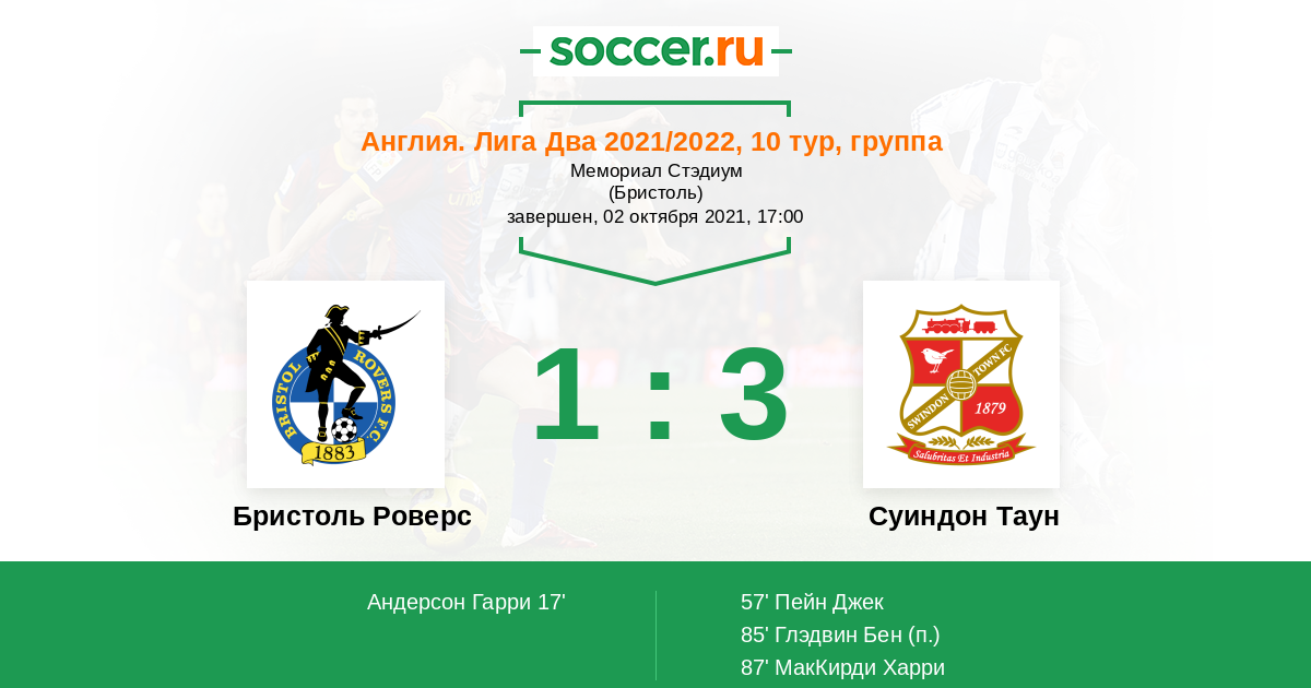 Бристоль Роверс - Суиндон Таун: обзор матча 2 октября 2021