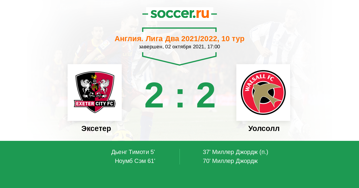 Эксетер - Уолсолл: обзор матча 2 октября 2021