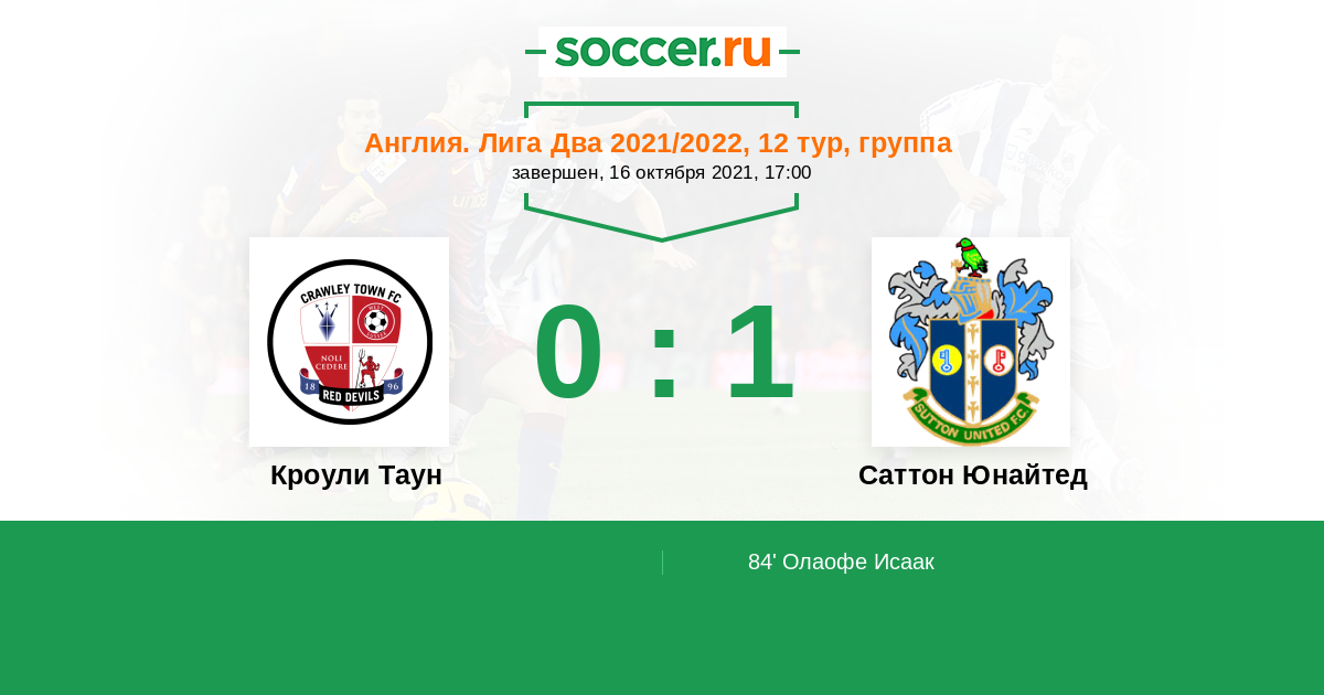 Кроули Таун - Саттон Юнайтед: обзор матча 16 октября 2021
