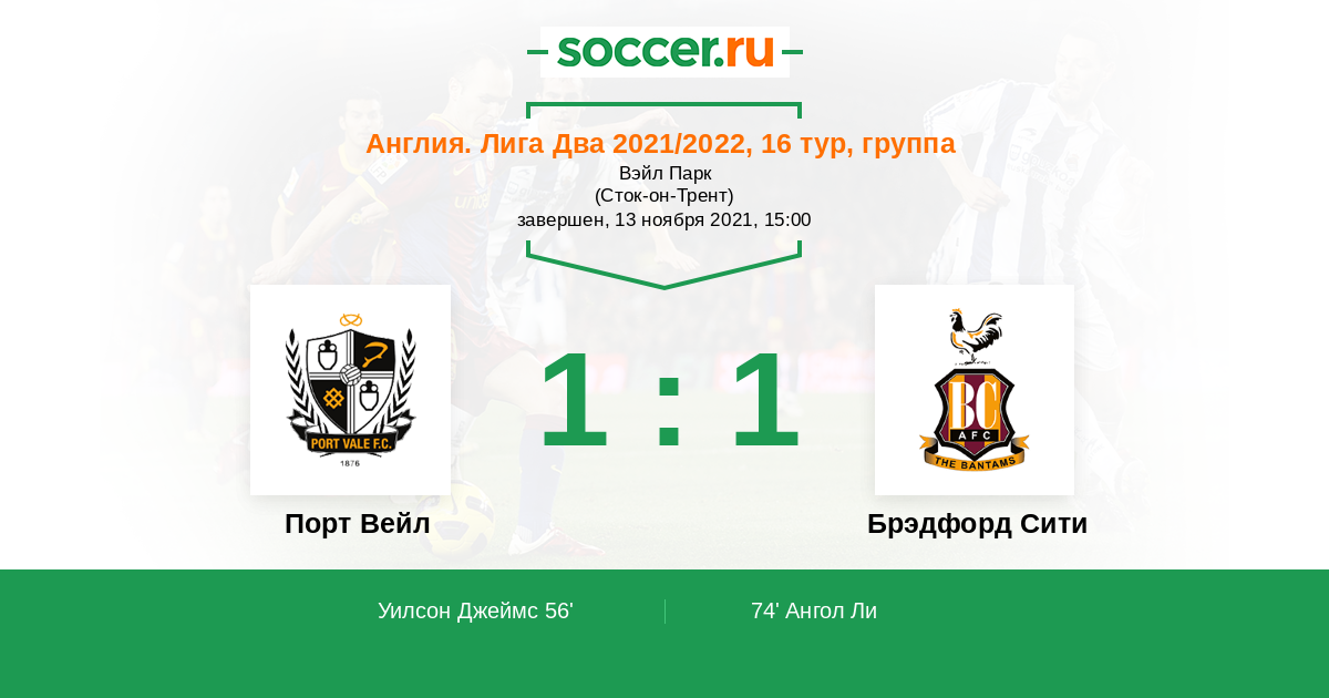Порт Вейл - Брэдфорд Сити: обзор матча 13 ноября 2021