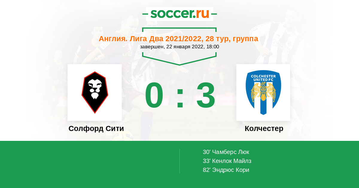 Солфорд Сити - Колчестер: обзор матча 22 января 2022