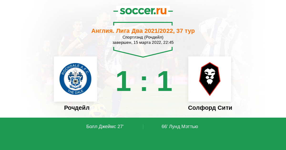 Рочдейл - Солфорд Сити: обзор матча 15 марта 2022