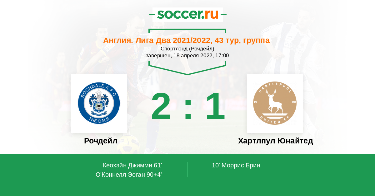 Рочдейл - Хартлпул Юнайтед: обзор матча 18 апреля 2022
