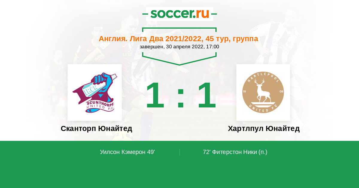 Сканторп Юнайтед - Хартлпул Юнайтед: обзор матча 30 апреля 2022