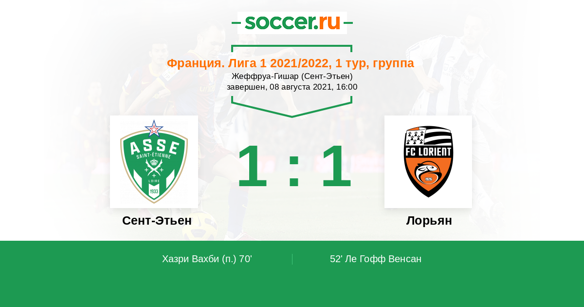 Сент-Этьен - Лорьян: обзор матча 8 августа 2021