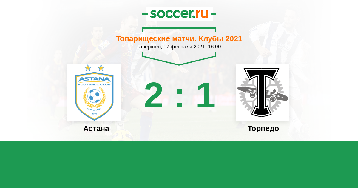 Астана - Торпедо: обзор матча 17 февраля 2021